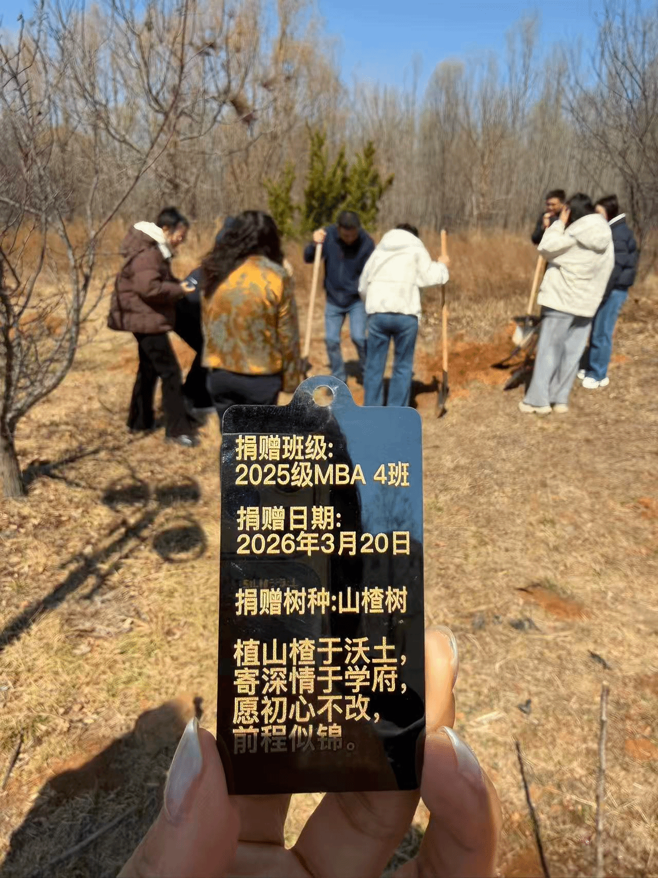 此次栽种山楂树,饱含着MBA四班全体同学的美好期许。大家以“植山楂于沃土,寄深情与学府”为心愿,既践行绿色环保理念,用实际行动为校园添绿,也寄托对母校的感恩之情、对同窗情谊的珍视之意。同学们纷纷表示,山楂树见证着大家在燕大的求学时光,寓意着学业有成、情谊绵长,未来将带着这份初心与热忱,砥砺奋进,不负母校栽培,以实干担当书写MBA学子的青春答卷,让青春与校园绿意一同向阳生长。