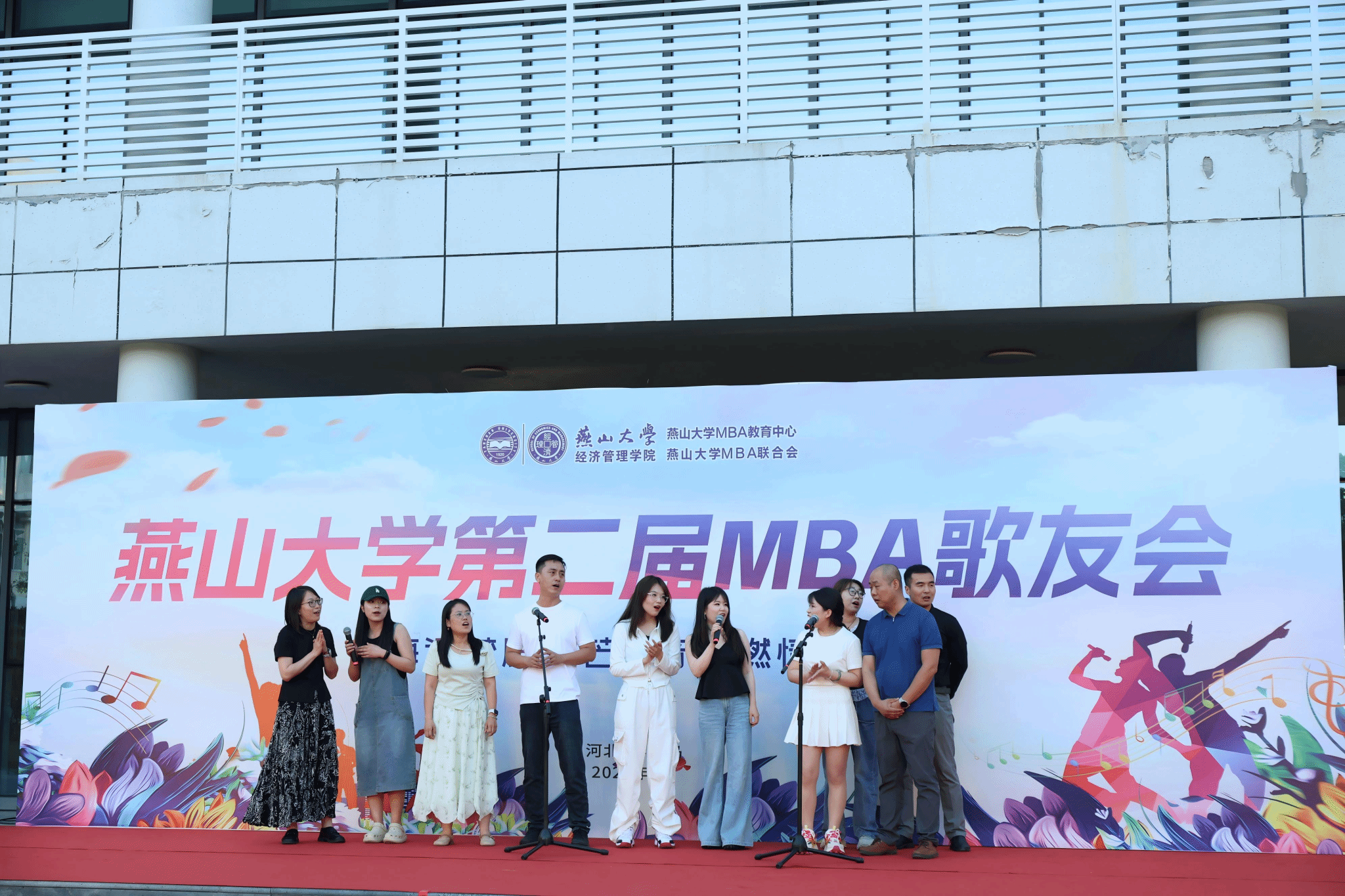 歌友会的最后,全体参与者共同来到舞台前合影。在欢声笑语中,大家手牵手,共同展望美好的未来,将现场气氛推向了最高潮。歌声中充满了对未来的憧憬和期待,也展现了燕山大学MBA学员们积极向上、团结奋进的精神风貌。