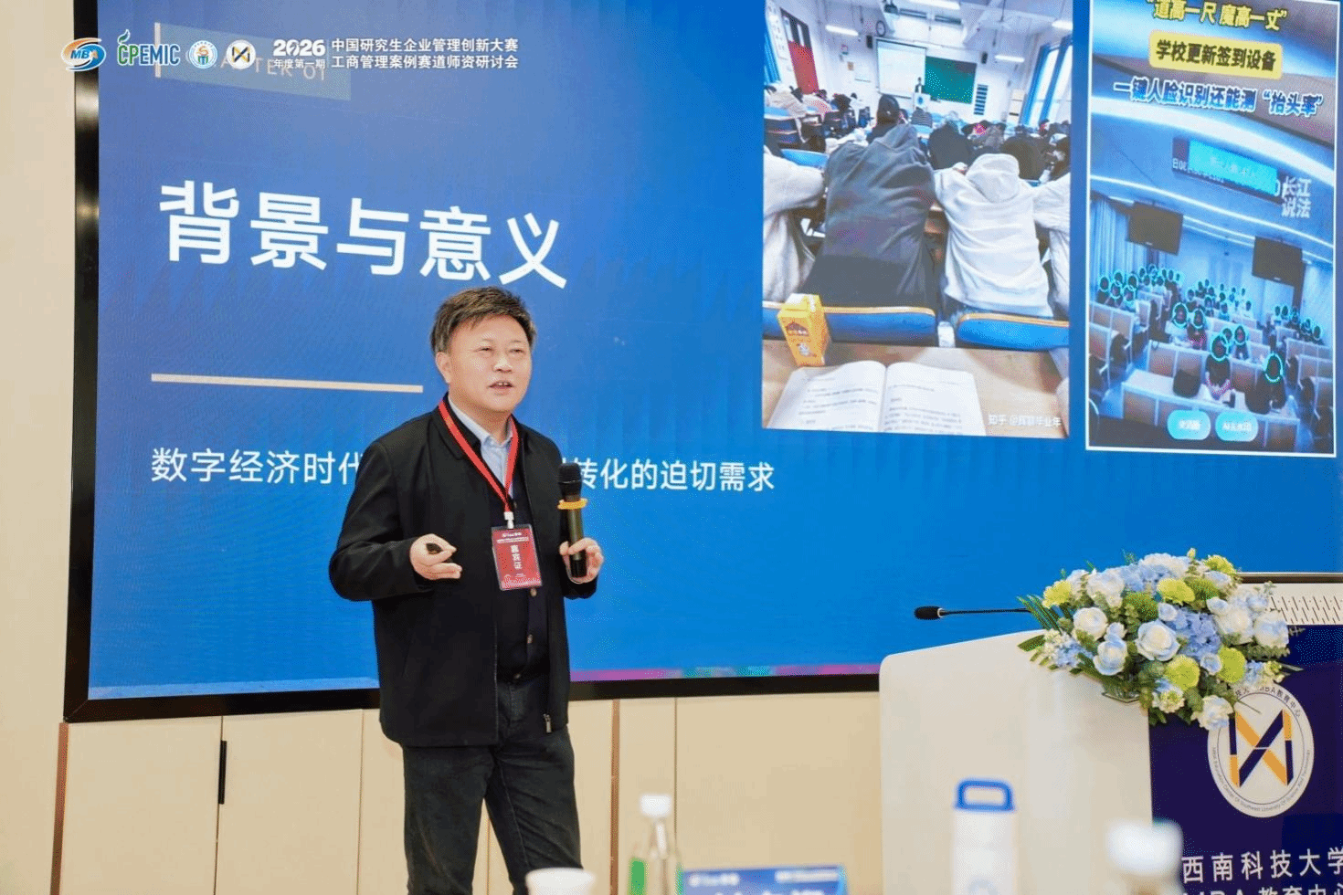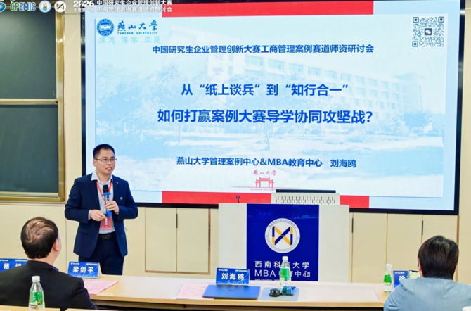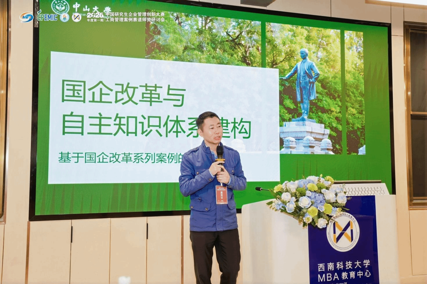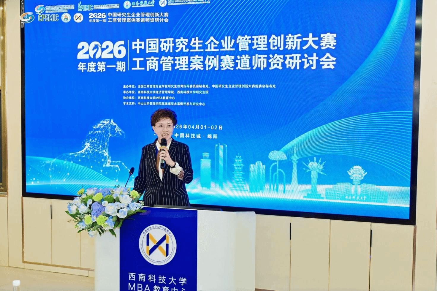 2026年4月1日至2日,2026年度第一期中国研究生企业管理创新大赛工商管理案例赛道师资研讨会在西南科技大学成功举办。本次研讨会由全国工商管理专业学位研究生教育指导委员会秘书处、中国研究生企业管理创新大赛组委会秘书处主办,西南科技大学经济管理学院、西南科技大学研究生院承办,西南科技大学MBA教育中心协办,中山大学管理学院陈瑞球亚太案例开发与研究中心提供学术支持。全国MBA教指委相关领导、国内高校案例教学领域知名专家、各高校MBA培养单位负责人及赛事指导教师代表130余人齐聚绵阳,围绕数智时代人才培养、案例开发、教学应用、赛事指导等议题展开深度研讨。我院刘海鸥教授受邀参加会议并做专题报告。