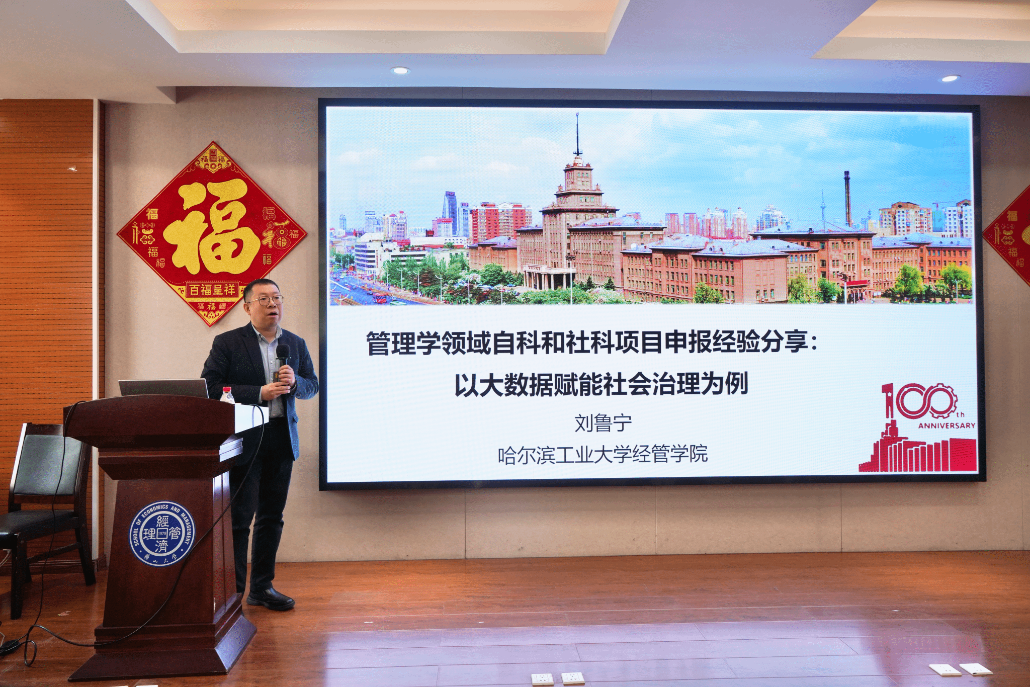 2026年4月14日上午,哈尔滨工业大学刘鲁宁教授应邀来院开展学术交流,并就管理学领域的国家自然科学基金和国家社科基金申报做专题讲座,学院教师、博士生等80余人参会。会议由燕山大学经济管理学院院长袁旭梅教授主持。