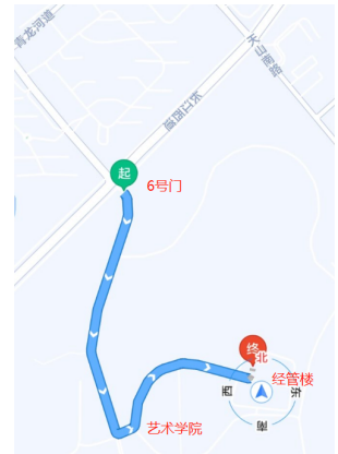 路线提示:校外考生可从秦皇岛火车站、北戴河火车站、山海关火车站、北戴河机场乘公共交通或出租车至燕山大学,持初试准考证可从各校门进入。建议路线:从燕大6号门(长江道)进入,步行约900米达到经管楼(如图所示),或从东区2号门(河北大街)进入,乘坐校车在西区经管学院站下车。不统一安排住宿,请提前做好行程规划,并注意天气变化。