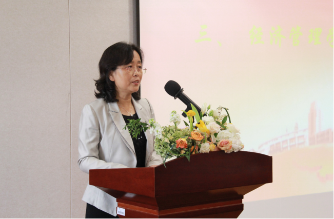 经济管理学院院长李春玲代表学院致辞,她介绍了学院及MBA教育中心的发展历史、使命愿景、课程设置、人才培养、办学成果等方面的情况,希望广大新生树立远大理想、牢记使命担当,发扬燕山大学的奋斗基因、工匠精神、卓越品质和家国情怀,谦虚谨慎,严格自律,重德敬业,追求上进,努力使自己成为一名有经济头脑、有管理能力、有合作精神、有商业道德的务实型、复合型的高层次管理人才。