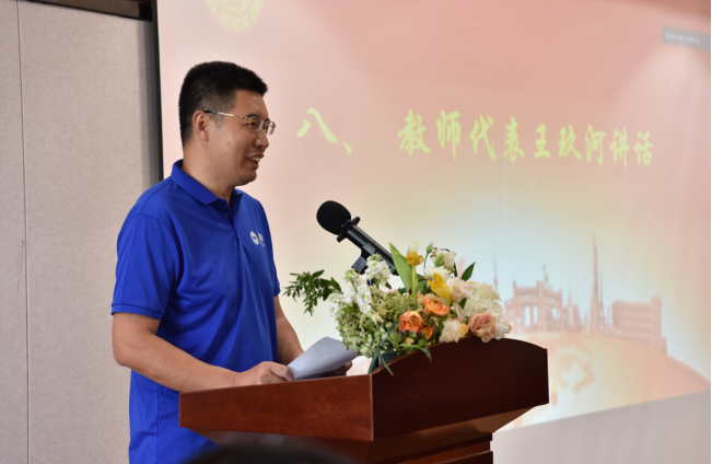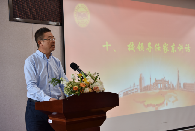 MBA教师团队代表王玖河教授寄语广大新同学“坐得住凳子、经得起诱惑、耐得住寂寞”,不断提升自己的国际视野、社会责任、家国情怀和专业精神,实现自身卓越蜕变。